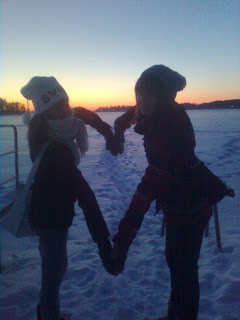 Olin just päässy kotii, ku noi tuli siihe oven taakse 8D Essi oli unohtanu meille jonku listan, mihin se oli kirjottanu kappalei, mitä se haluu iPodiin. Ne lämmitteli pari minuuttii siin meiä eteises ja lähti sitte B--)